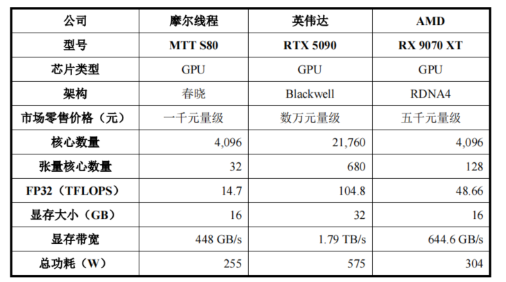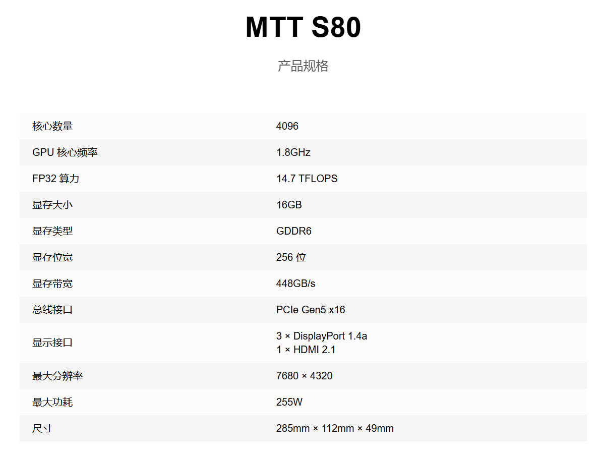 游戏 MTTS80 京东售价 1499 元。官方宣称其性能规格与英伟达 RTX 3060 相当。公司推出的国内首款支持 Windows 操作系统以及 DirectX 11/12 图形计算库的消费级显卡。